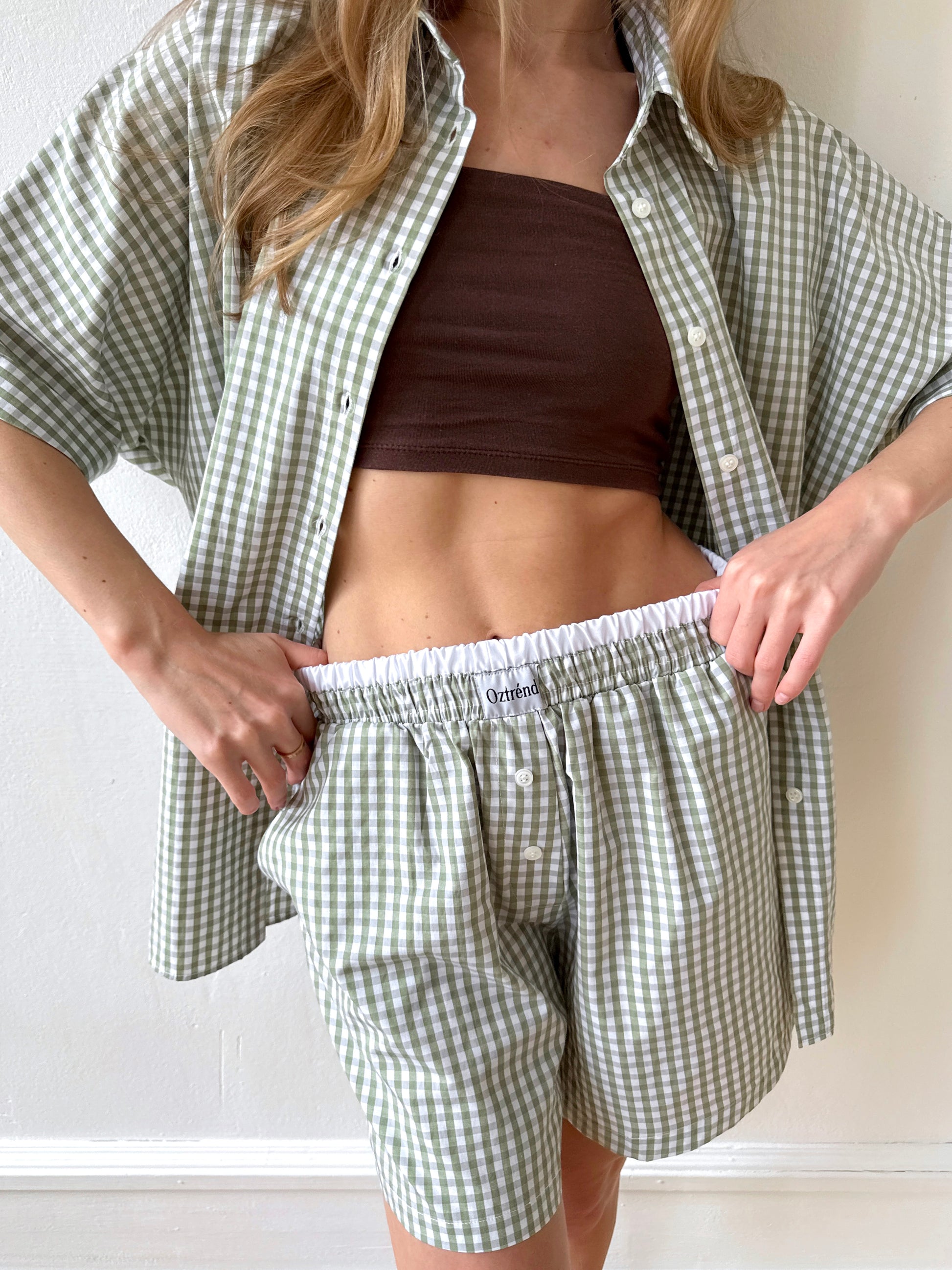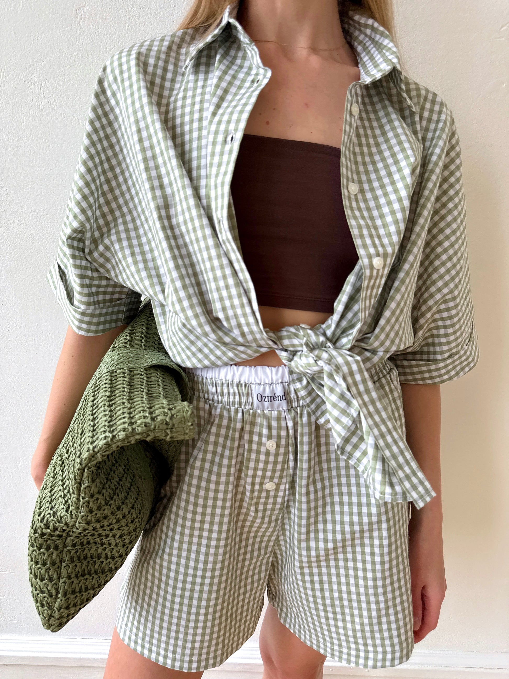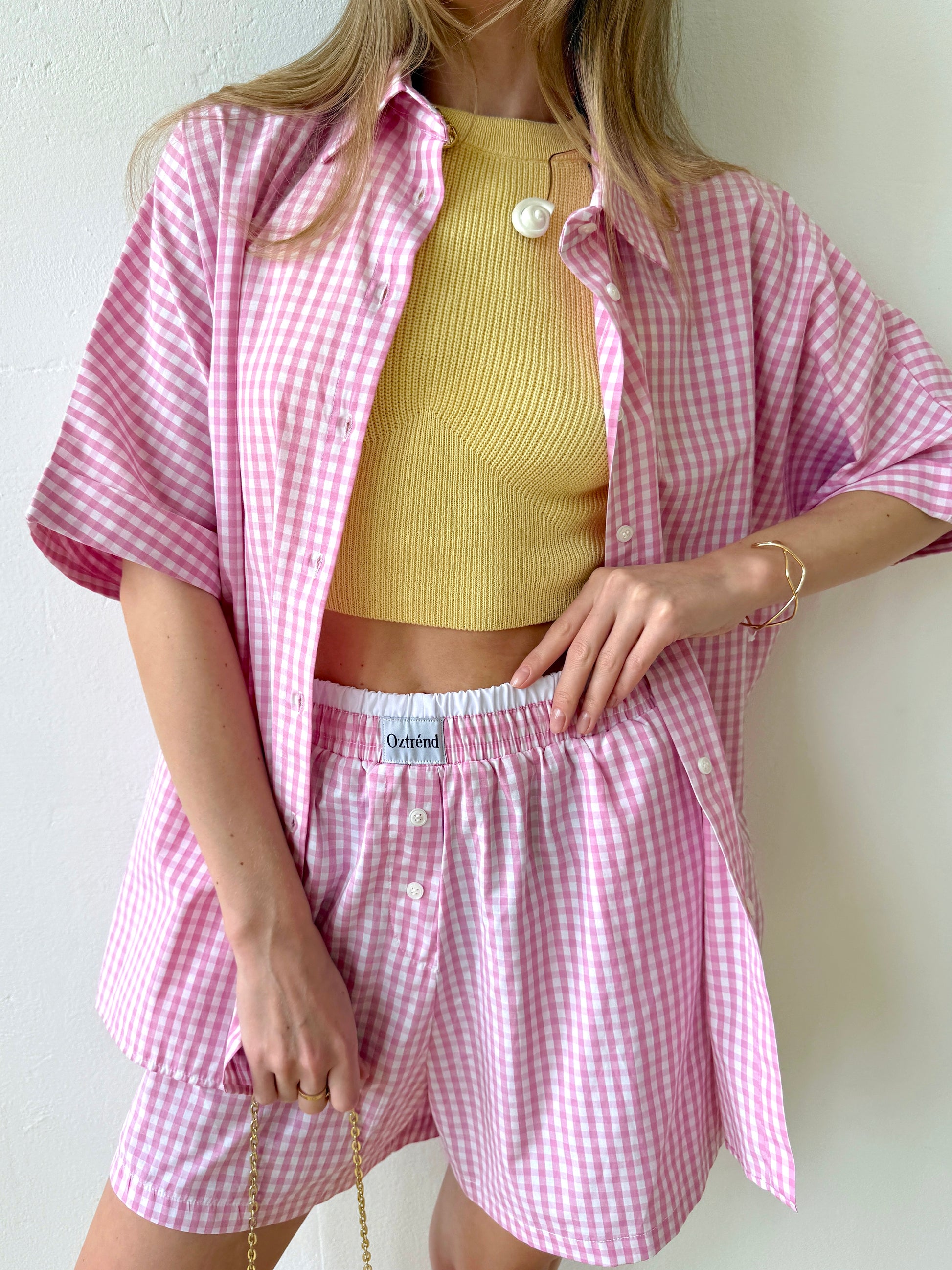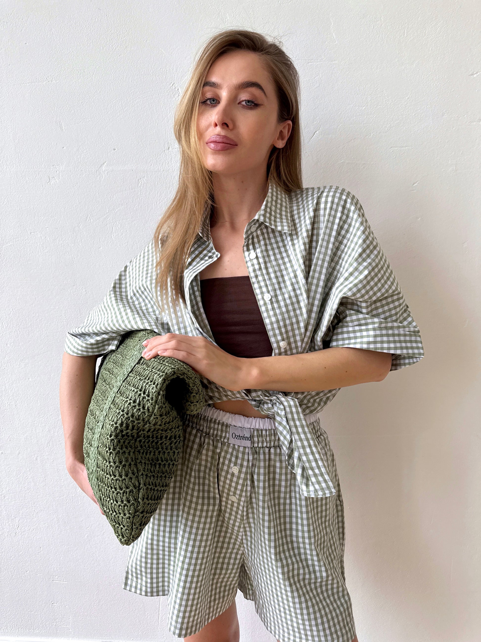 The Check&Chill suit is the perfect combination of style and convenience. The shirt has cutouts on the sides that allow you to tie it at the waist, creating a stylish and feminine silhouette. High-rise shorts that accentuate your figure and add lightness to your look.