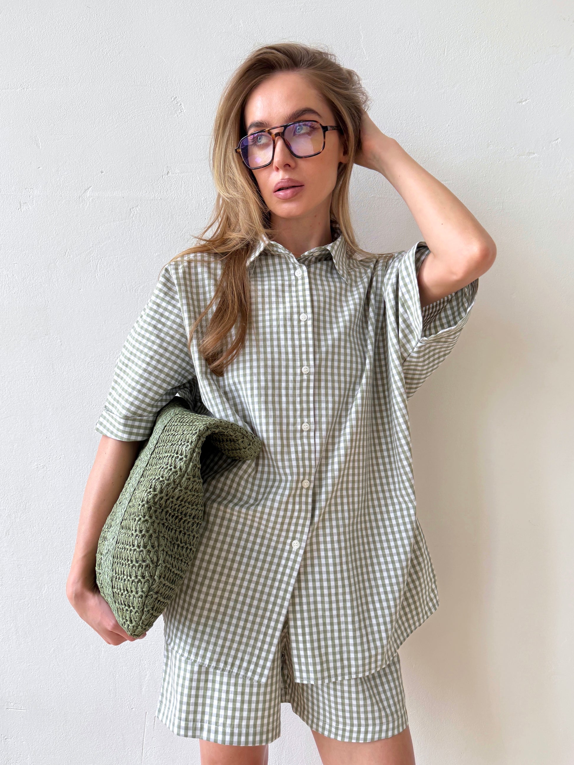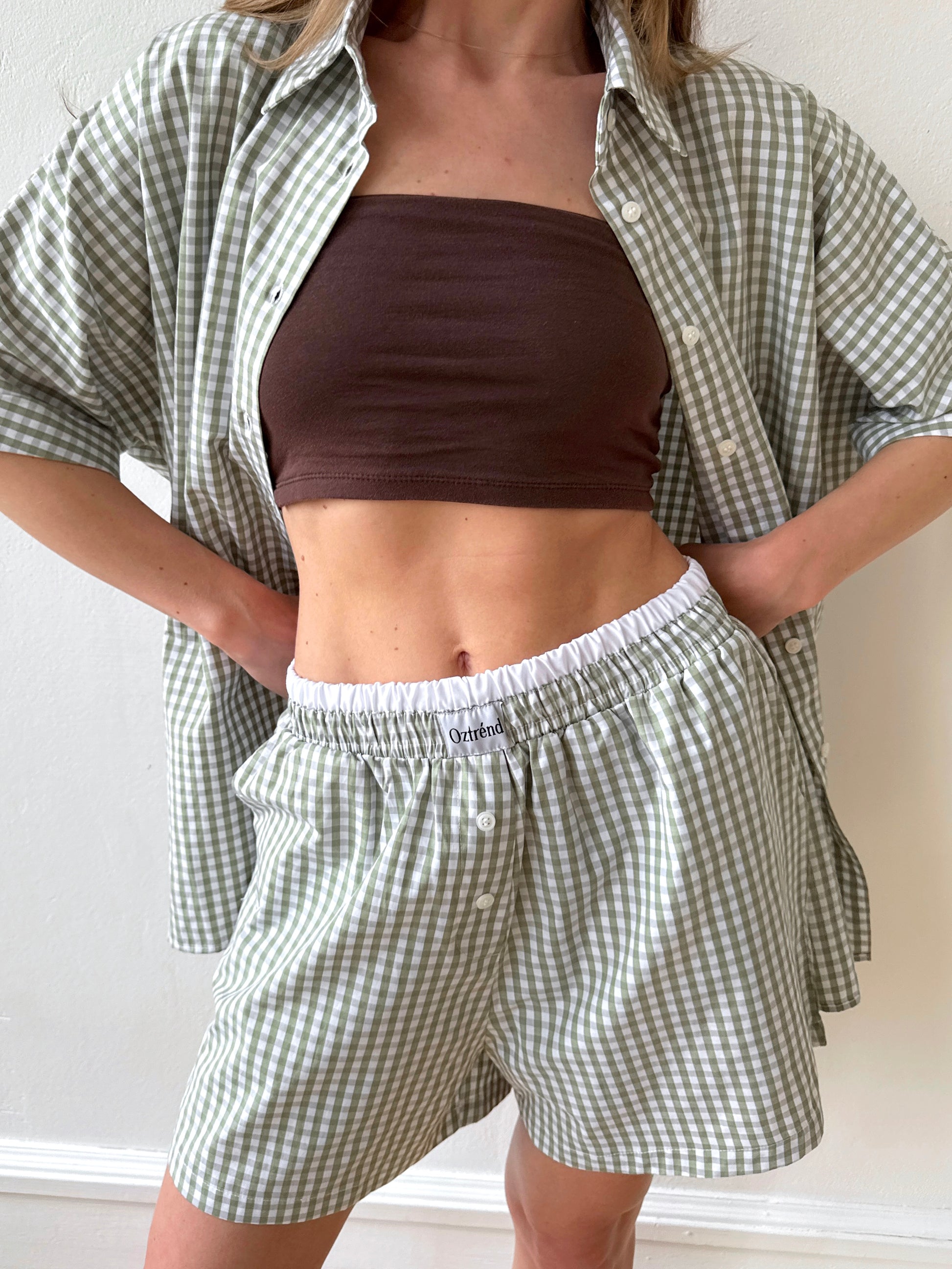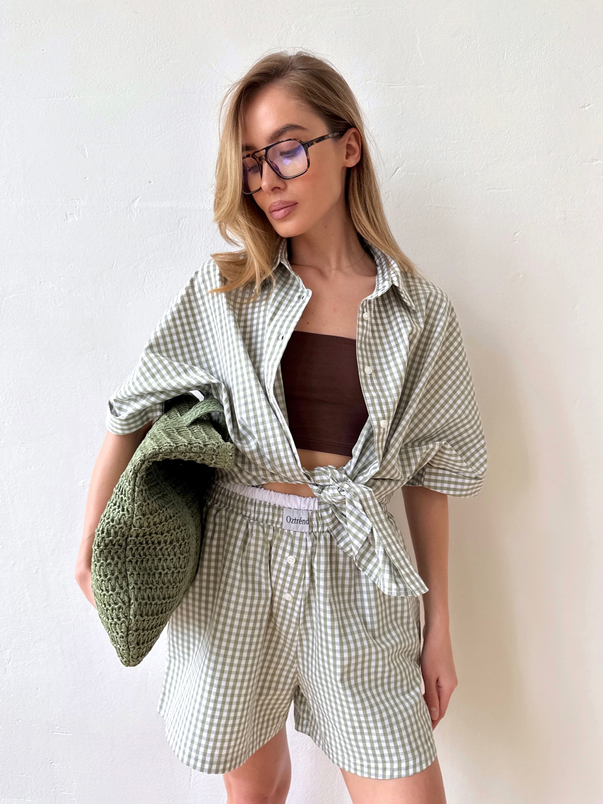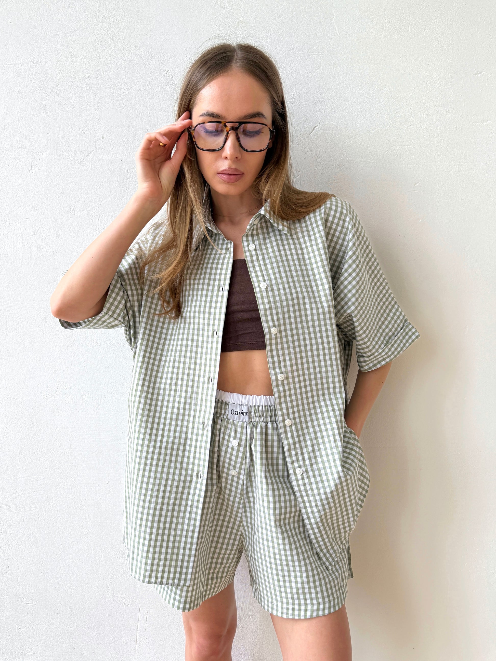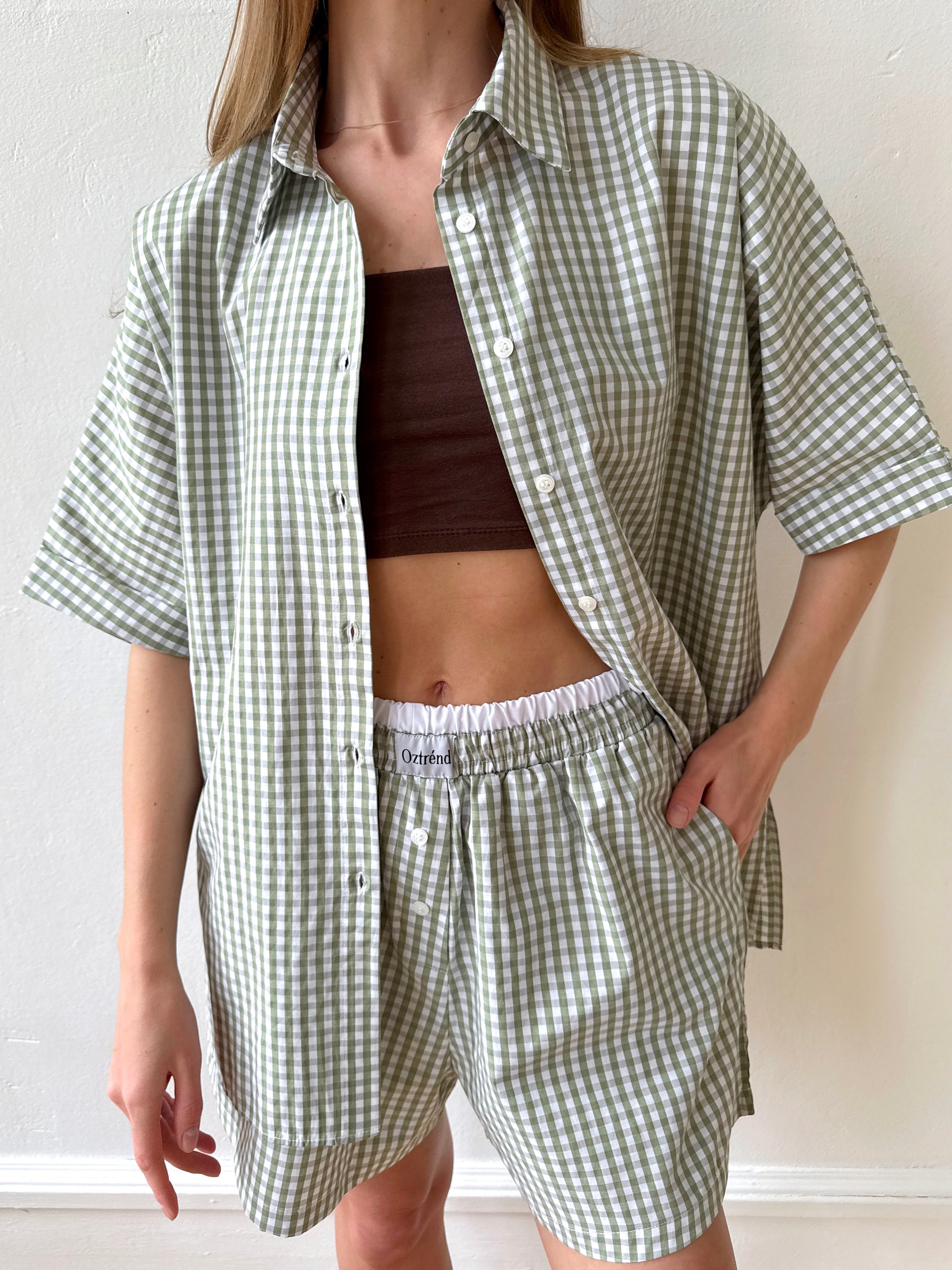 The Check&Chill suit is the perfect combination of style and convenience. The shirt has cutouts on the sides that allow you to tie it at the waist, creating a stylish and feminine silhouette. High-rise shorts that accentuate your figure and add lightness to your look.
