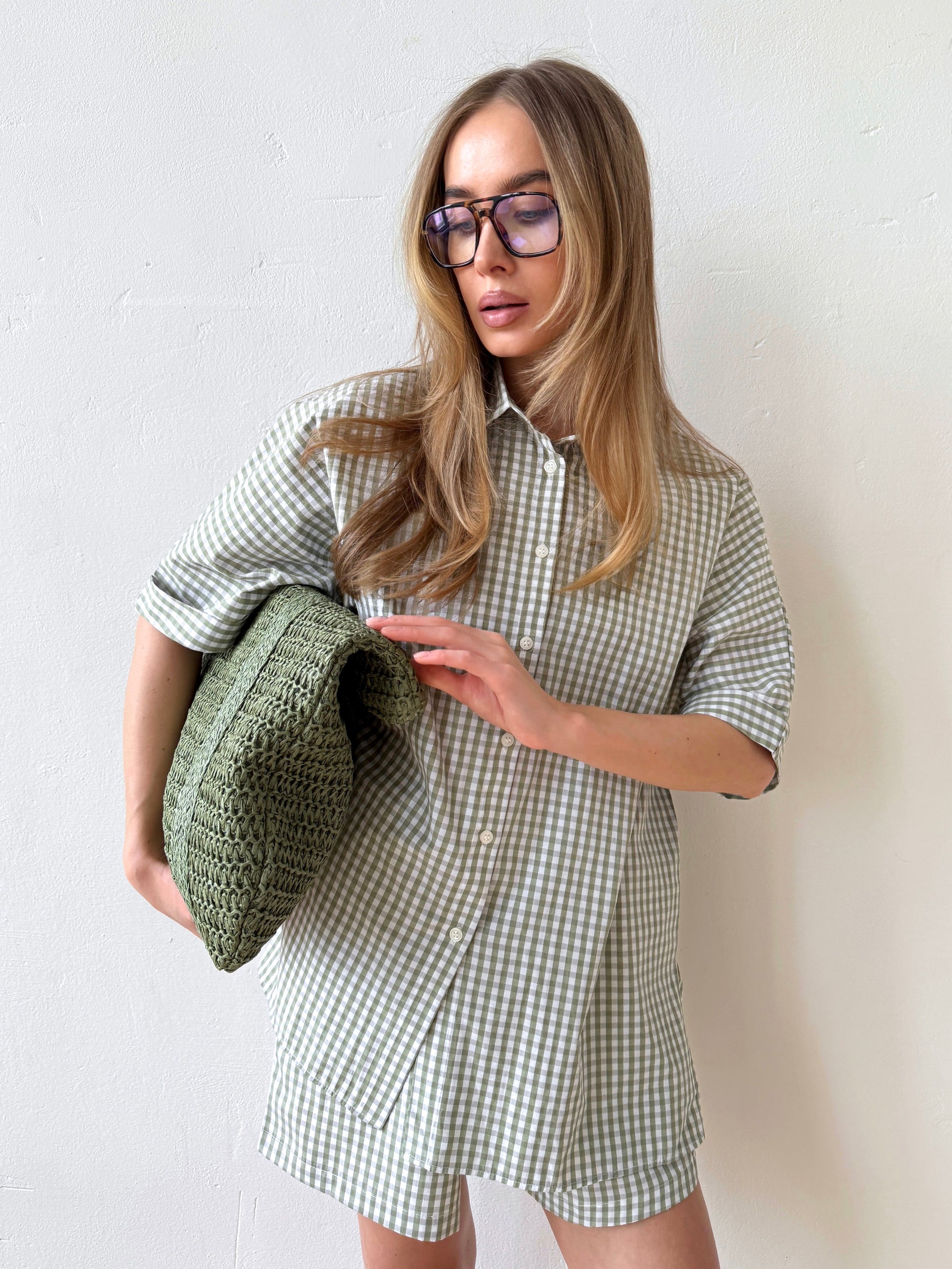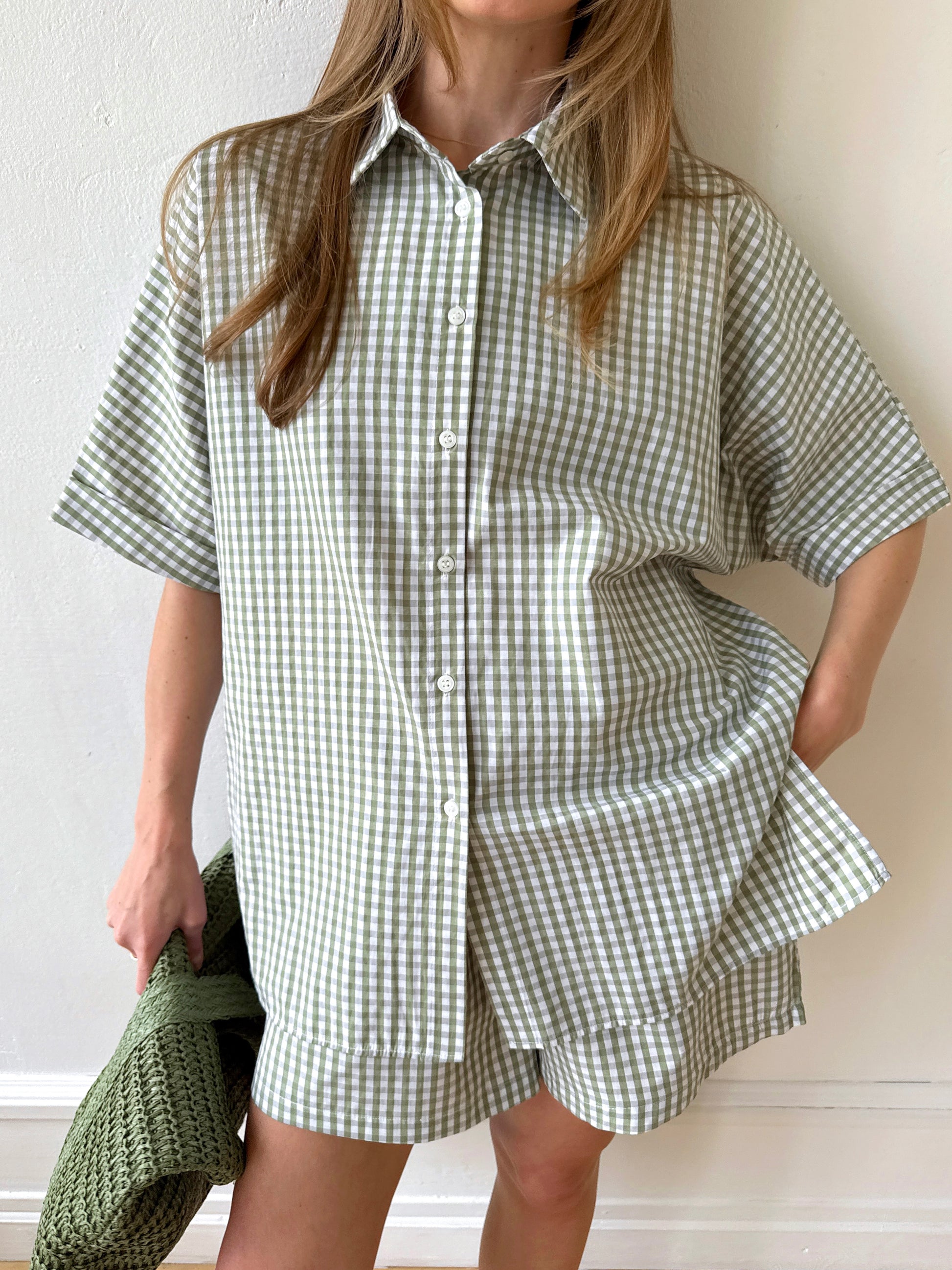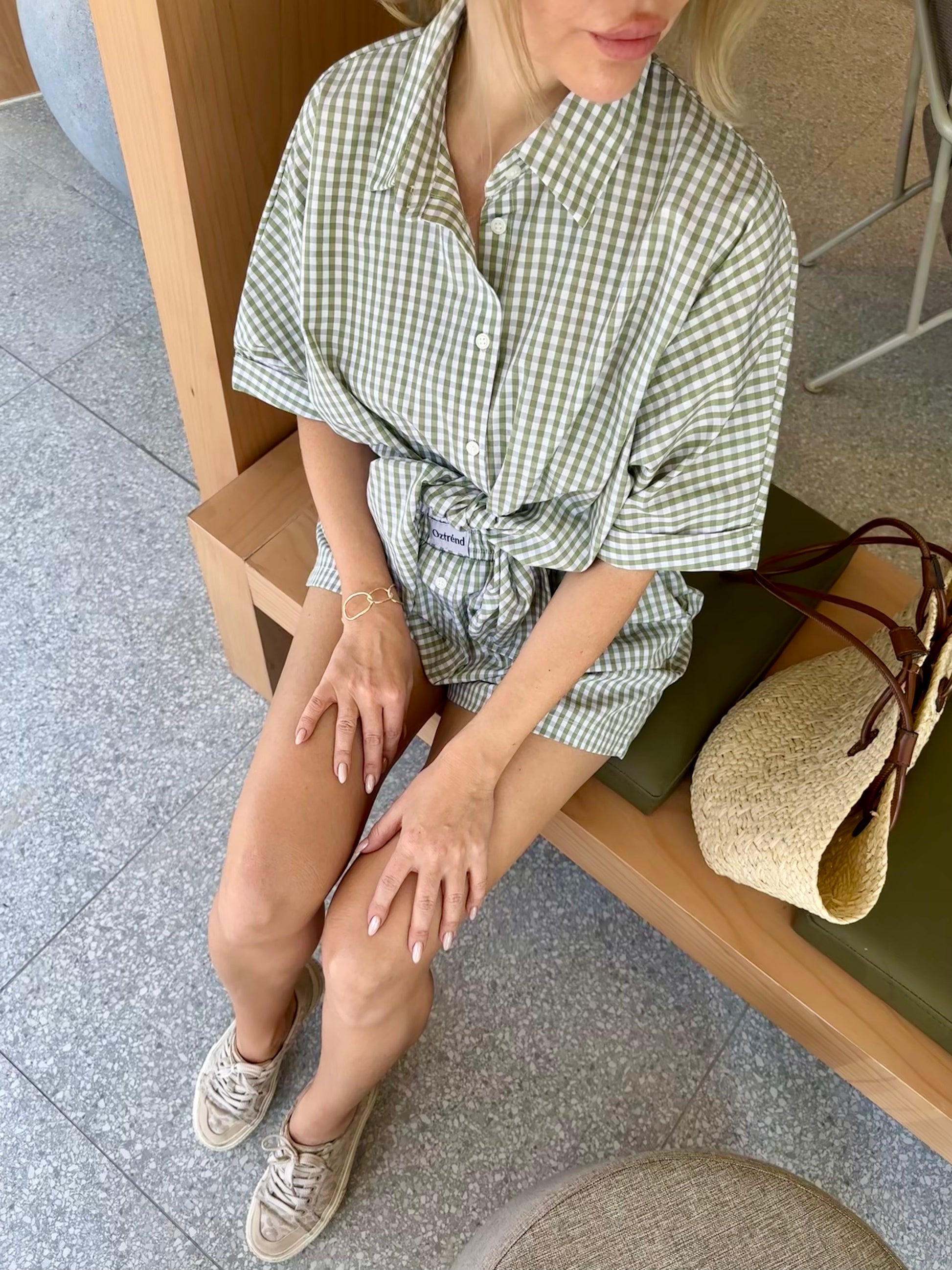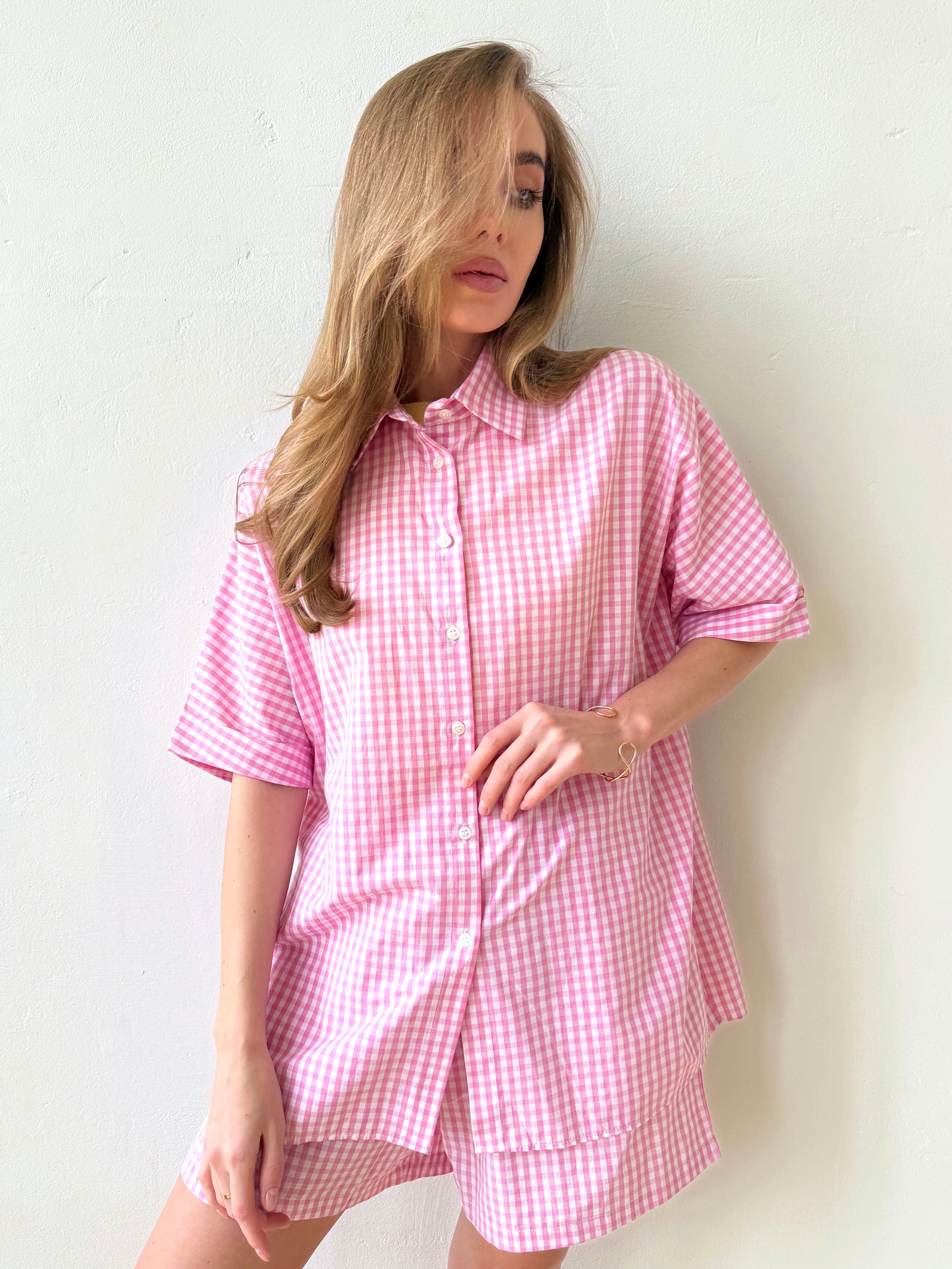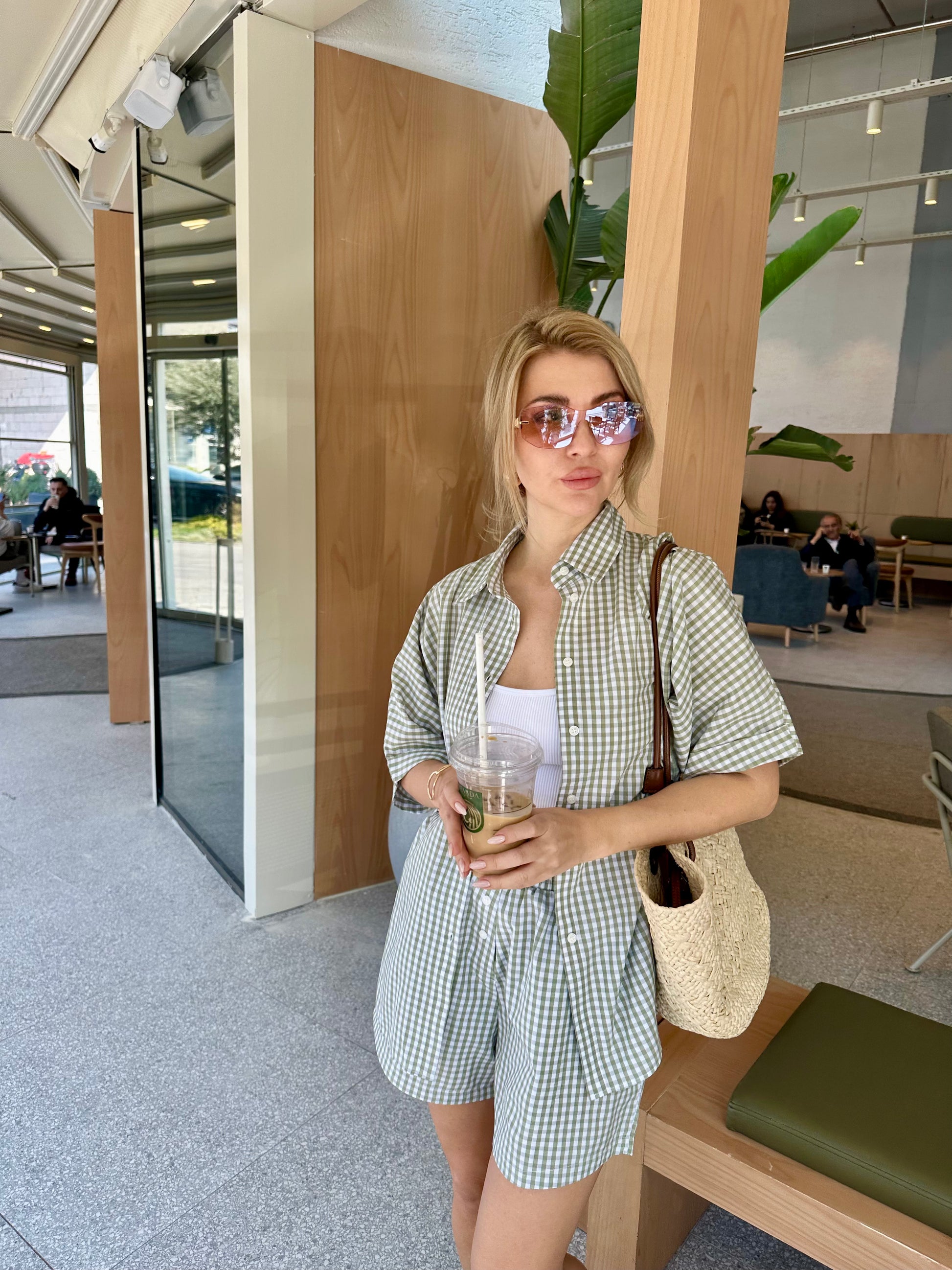 The Check&Chill suit is the perfect combination of style and convenience. The shirt has cutouts on the sides that allow you to tie it at the waist, creating a stylish and feminine silhouette. High-rise shorts that accentuate your figure and add lightness to your look.