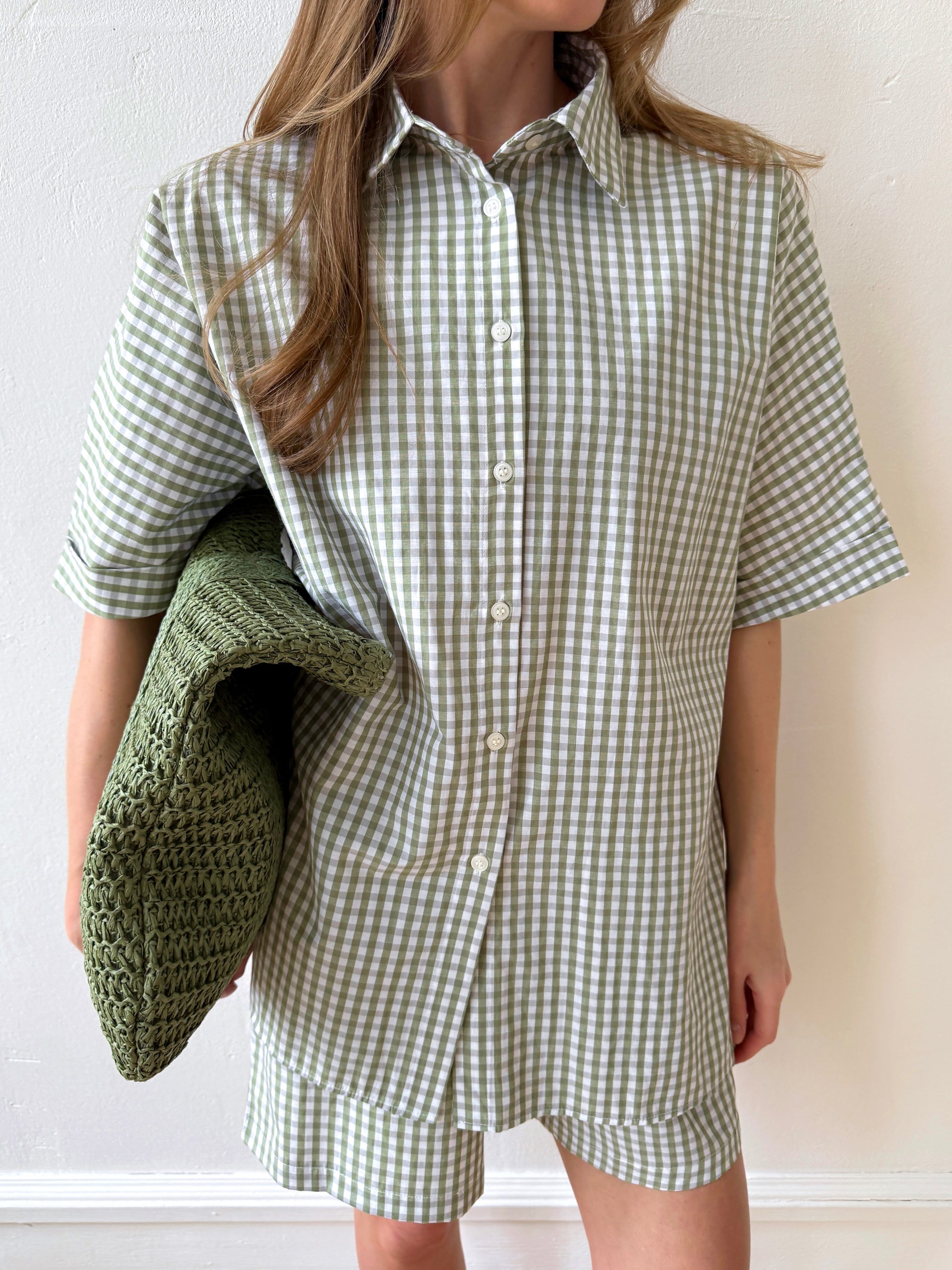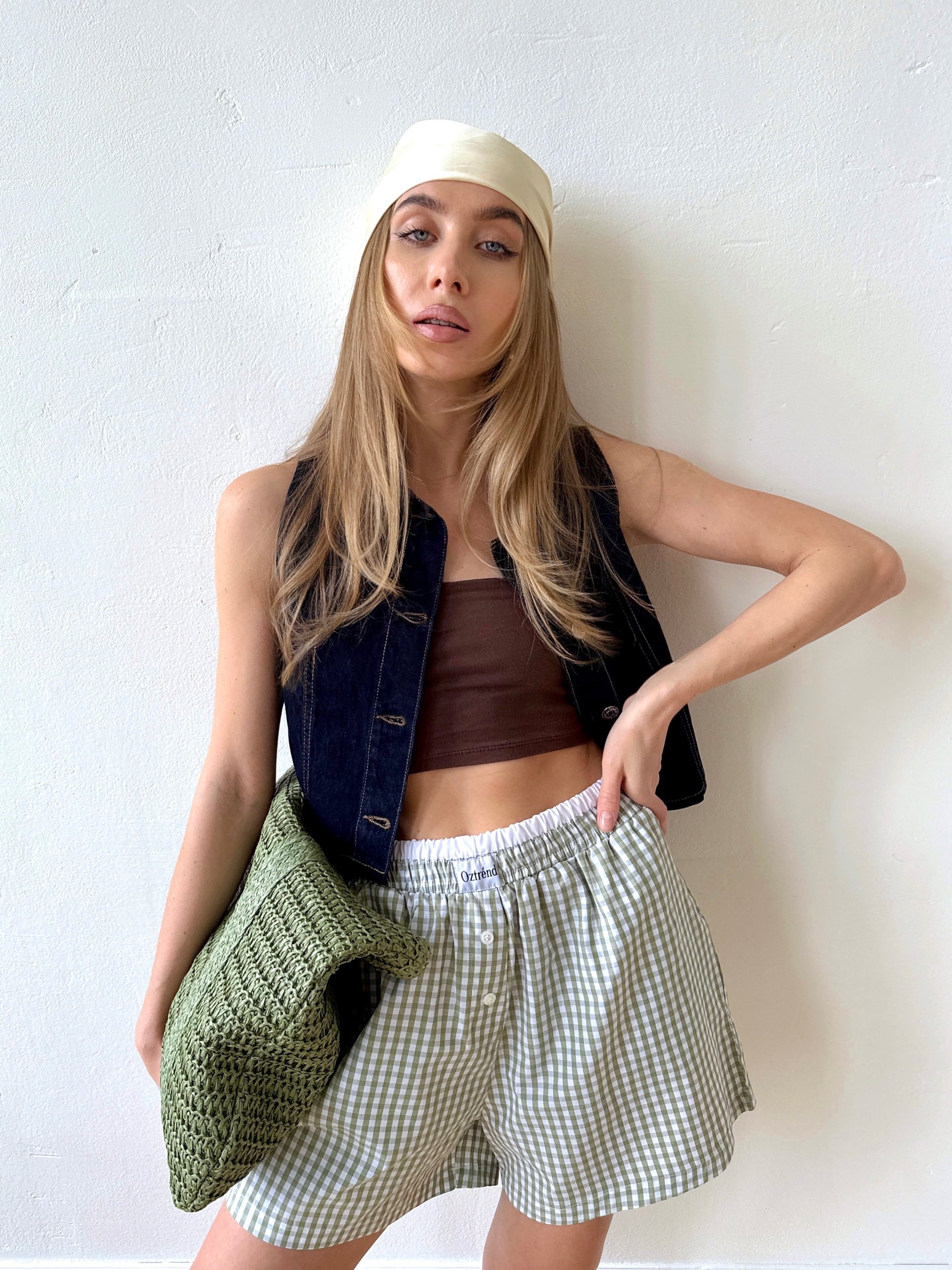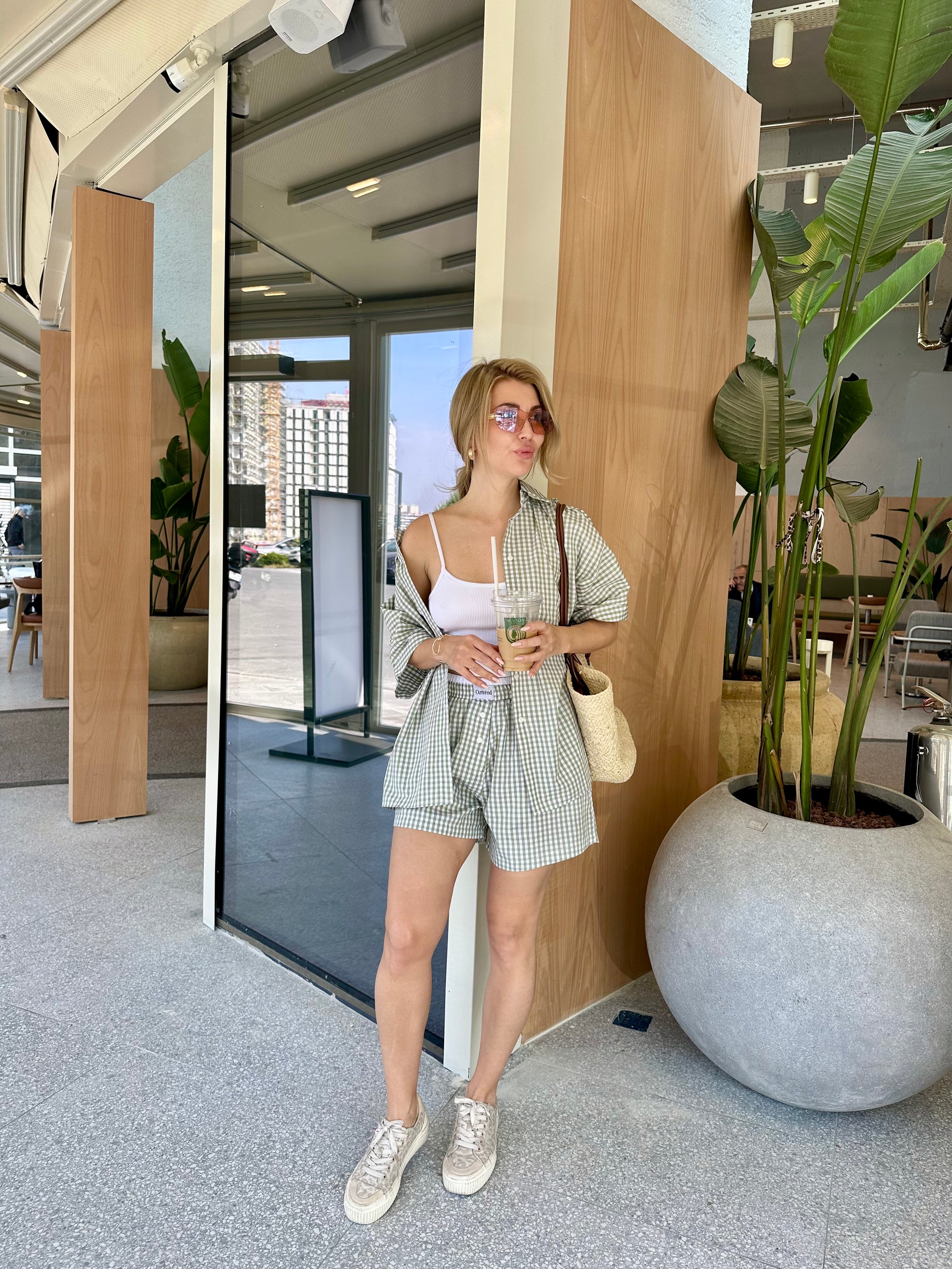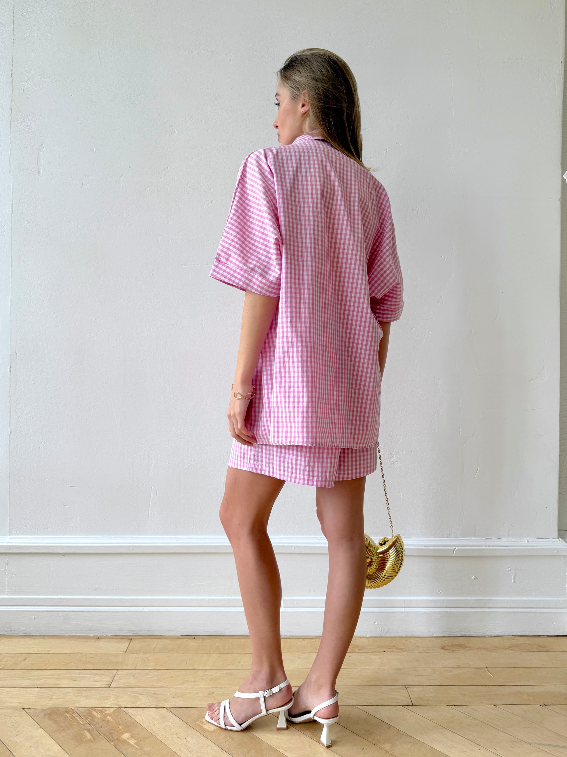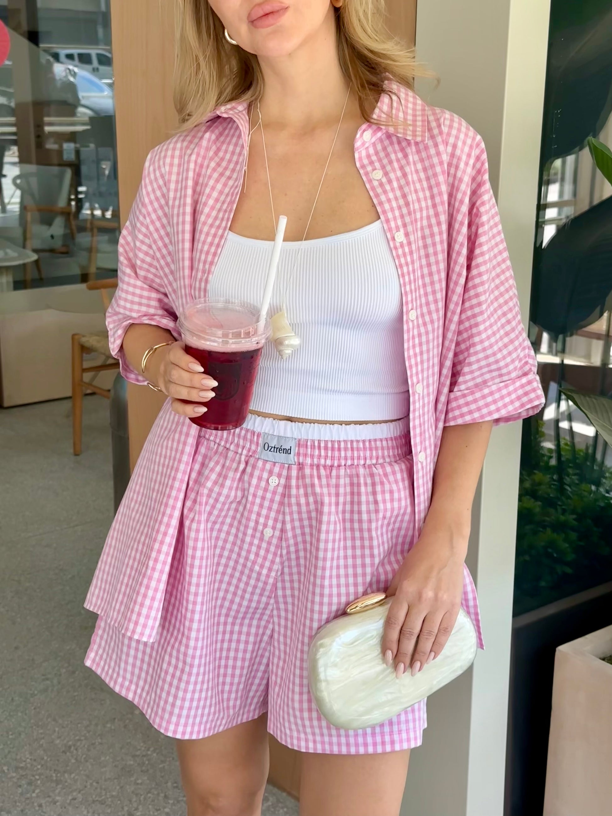 The Check&Chill suit is the perfect combination of style and convenience. The shirt has cutouts on the sides that allow you to tie it at the waist, creating a stylish and feminine silhouette. High-rise shorts that accentuate your figure and add lightness to your look.