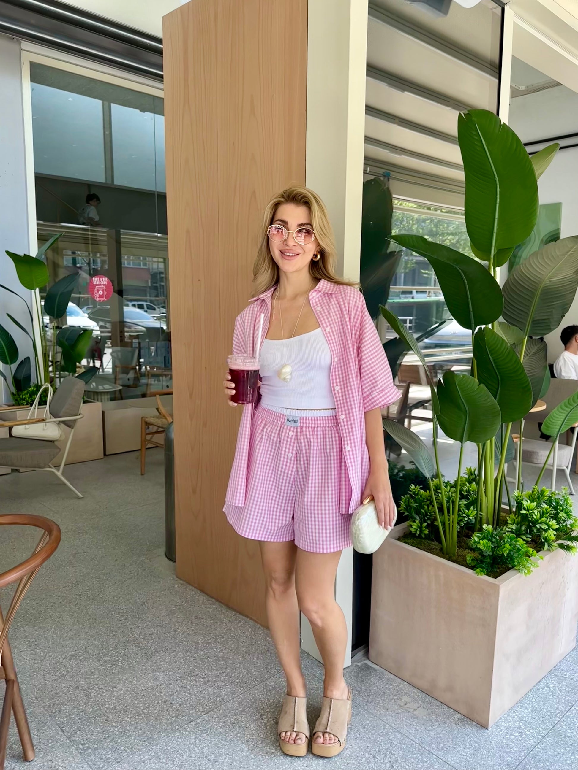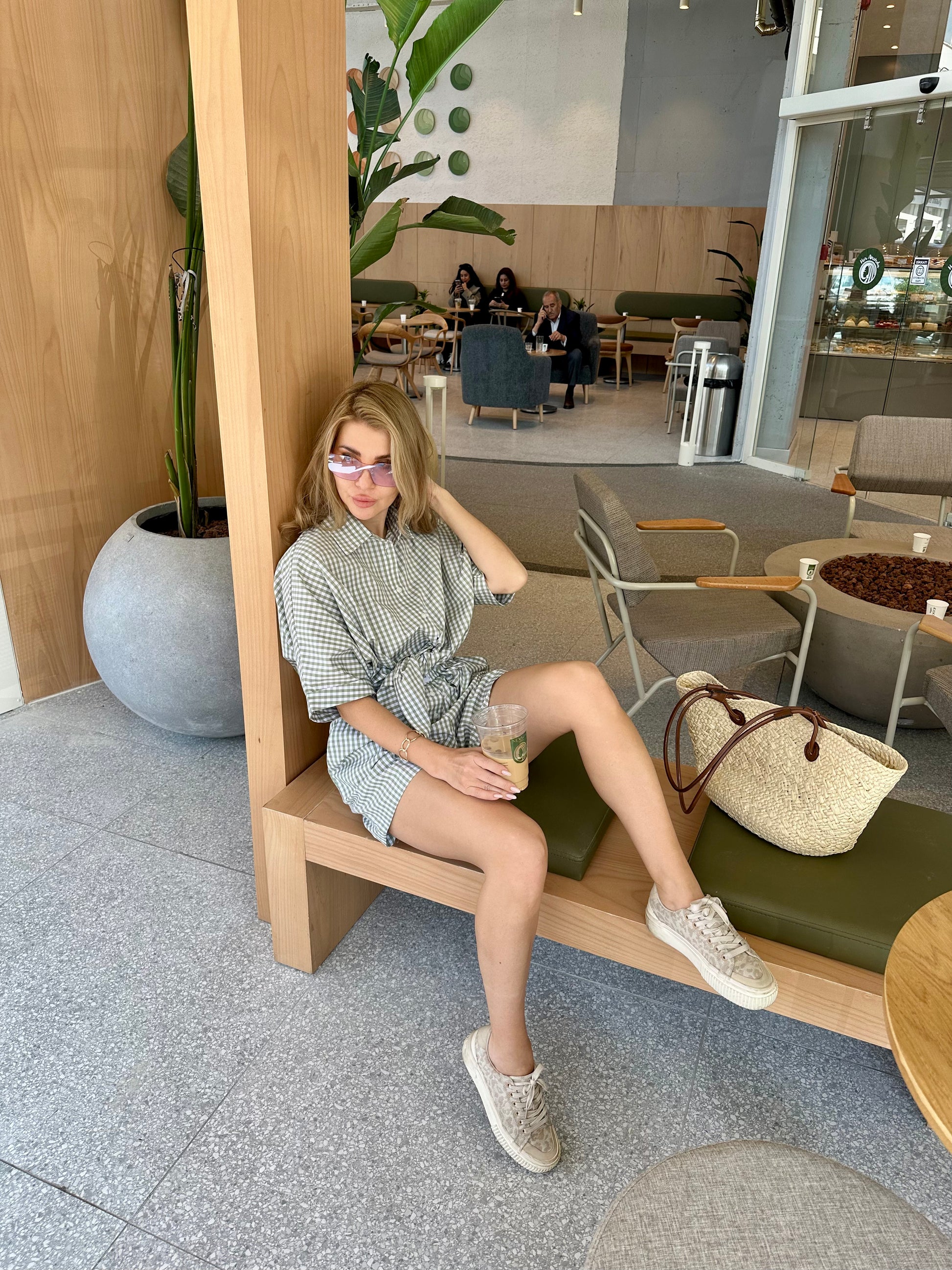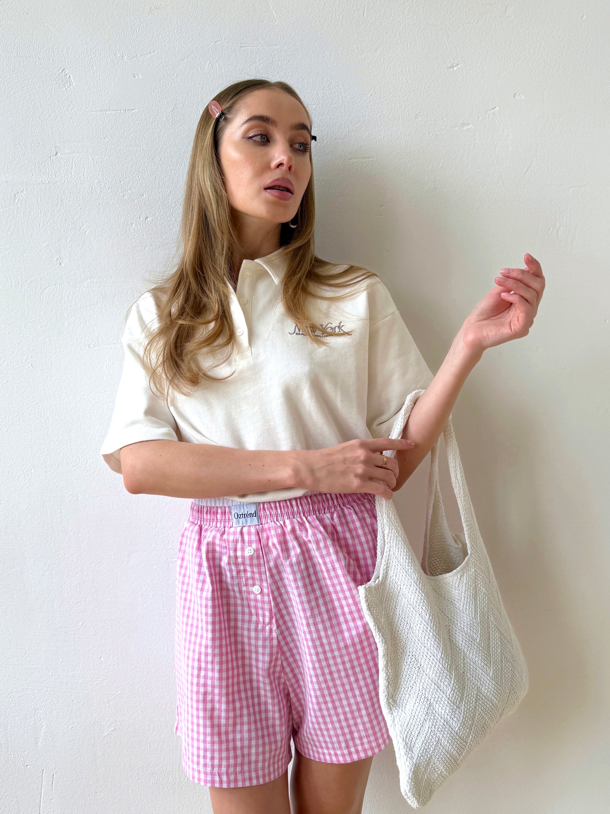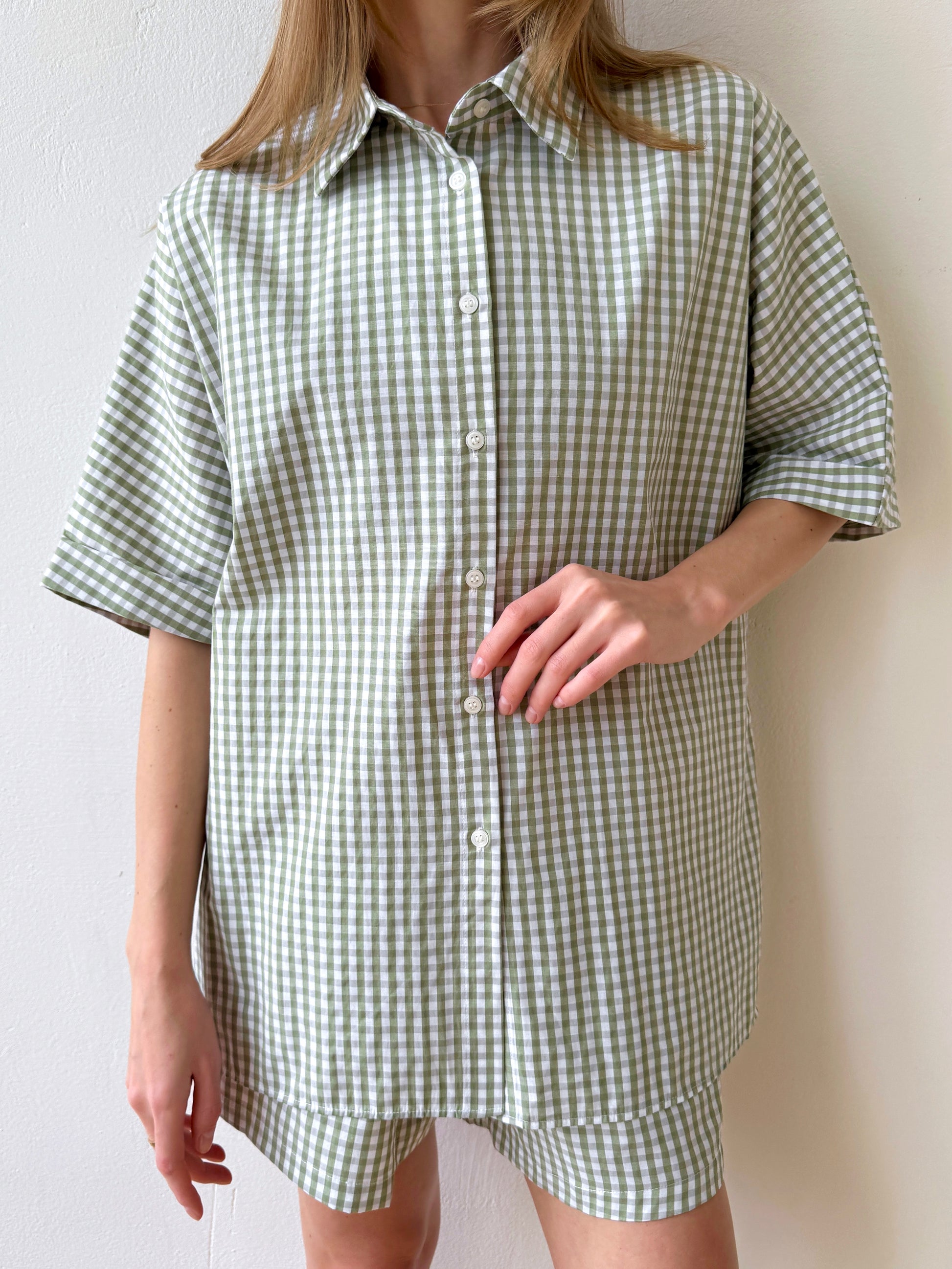 The Check&Chill suit is the perfect combination of style and convenience. The shirt has cutouts on the sides that allow you to tie it at the waist, creating a stylish and feminine silhouette. High-rise shorts that accentuate your figure and add lightness to your look.