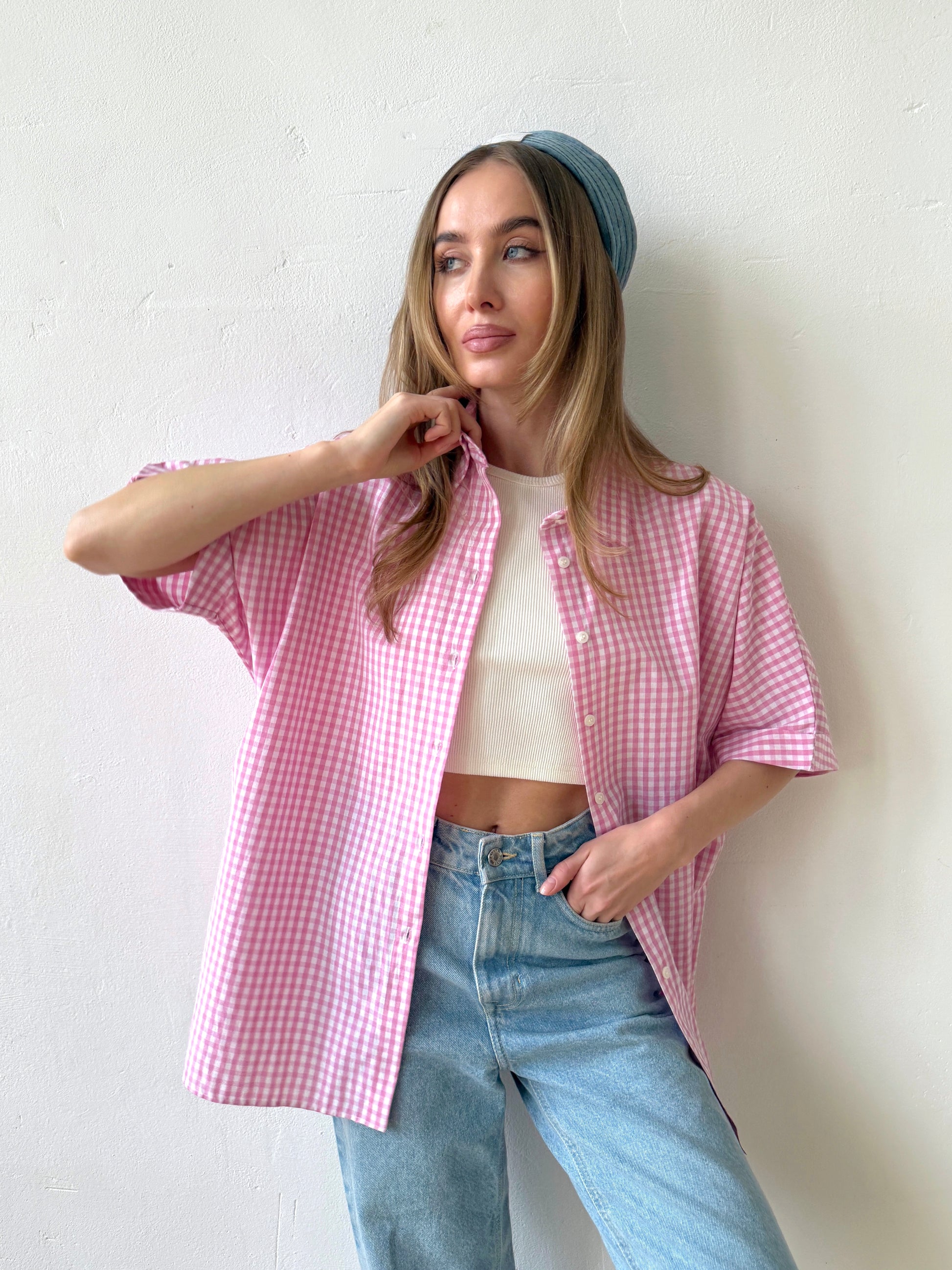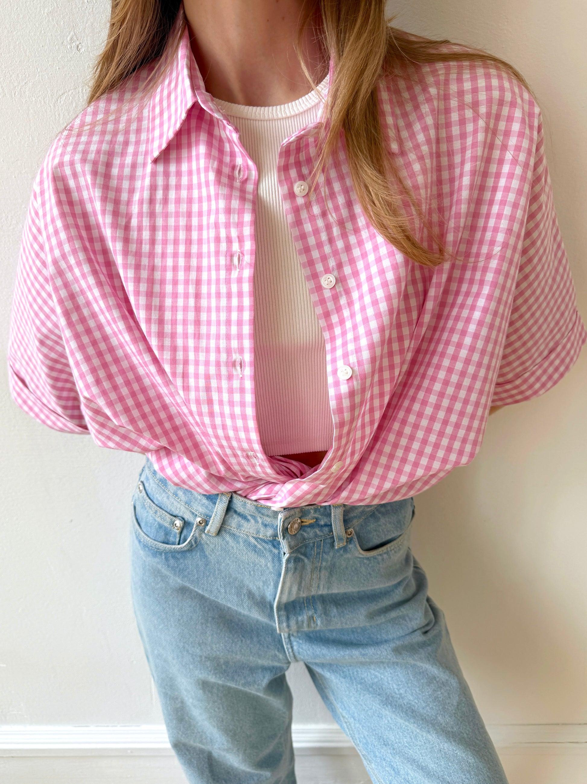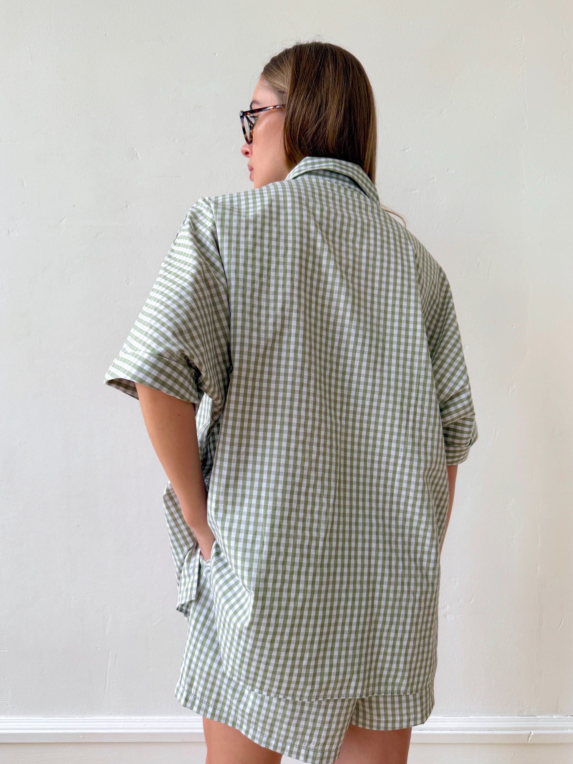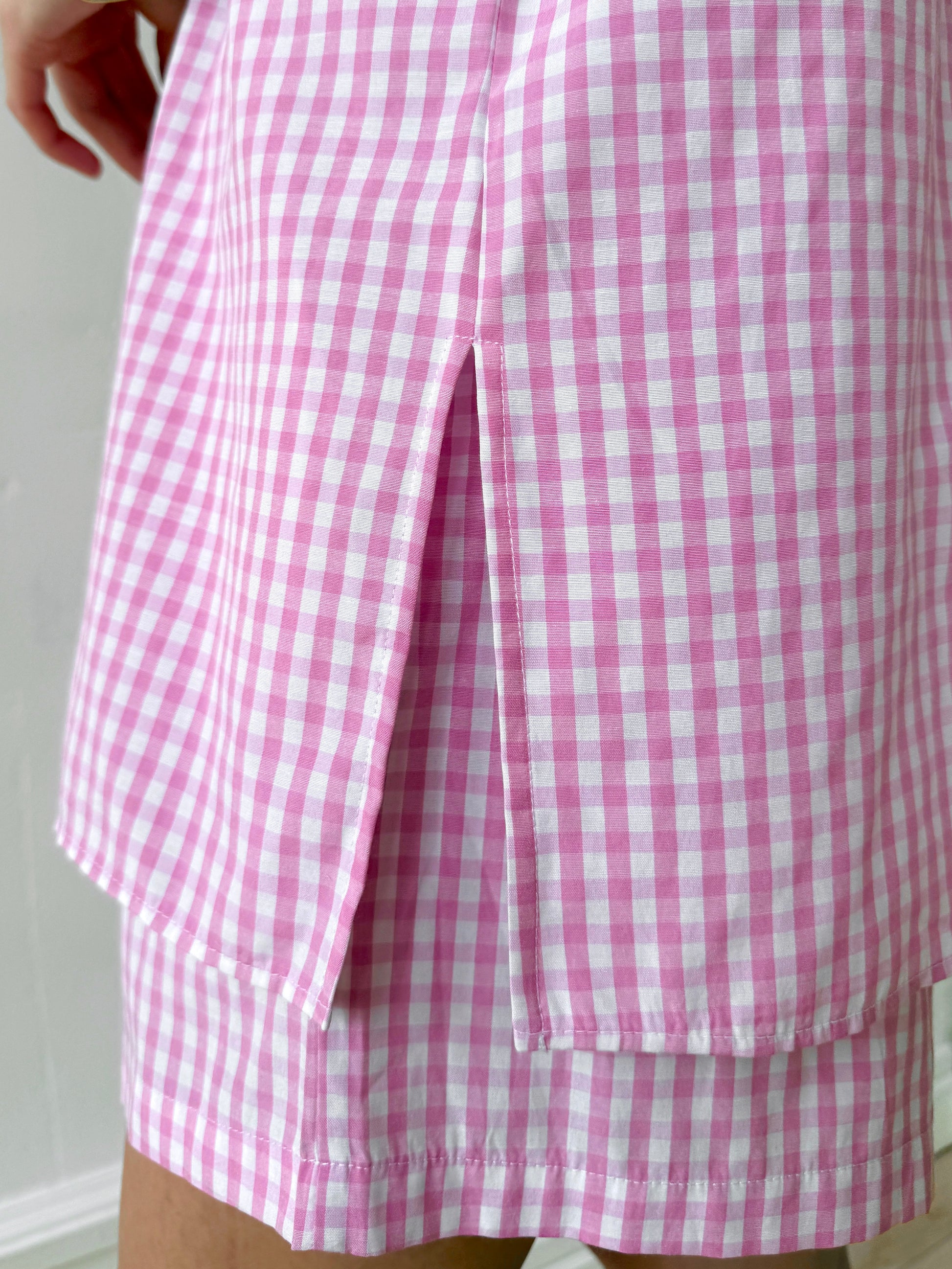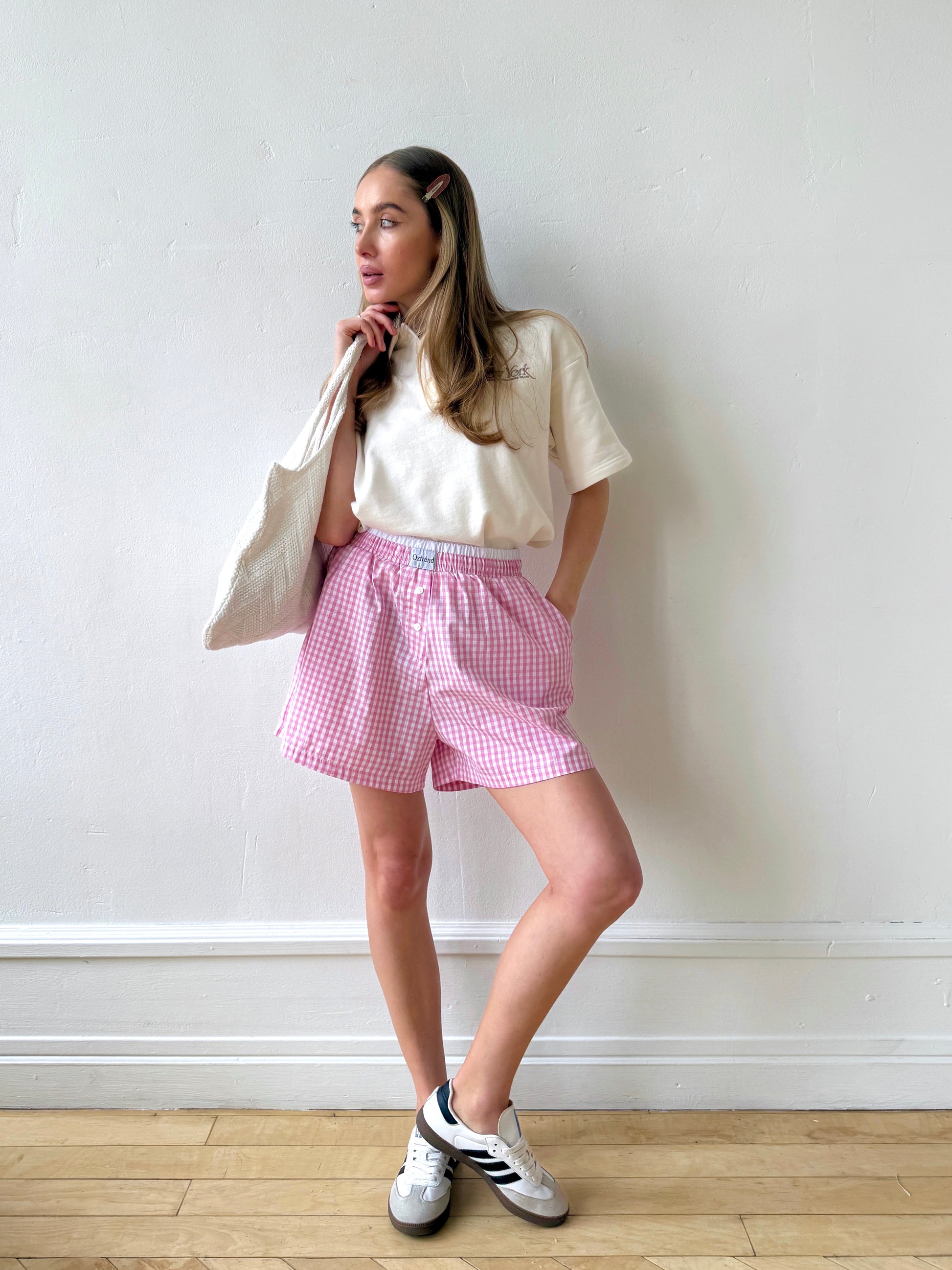 The Check&Chill suit is the perfect combination of style and convenience. The shirt has cutouts on the sides that allow you to tie it at the waist, creating a stylish and feminine silhouette. High-rise shorts that accentuate your figure and add lightness to your look.
